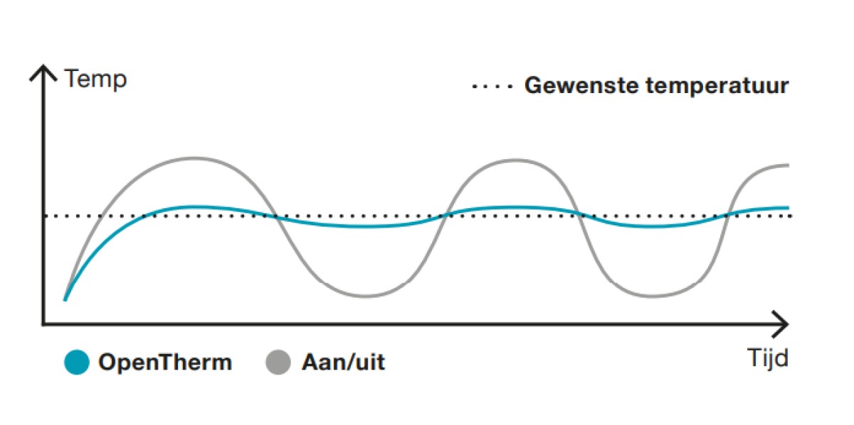 De door Remeha toegepaste technologie met opentherm maakt het mogelijk dat de warmtepomp én de ketel precies het juiste vermogen leveren dat nodig is. Hierdoor kan de regeling optimaal bepalen of de warmtepomp de warmte levert of dat de cv-ketel moet bijspringen.